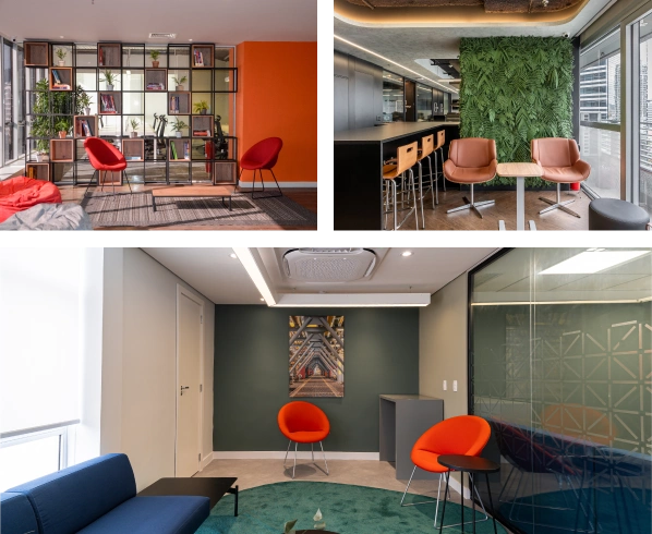 Ambiente pronto para uso, com mobiliário e marcenaria sob medida.